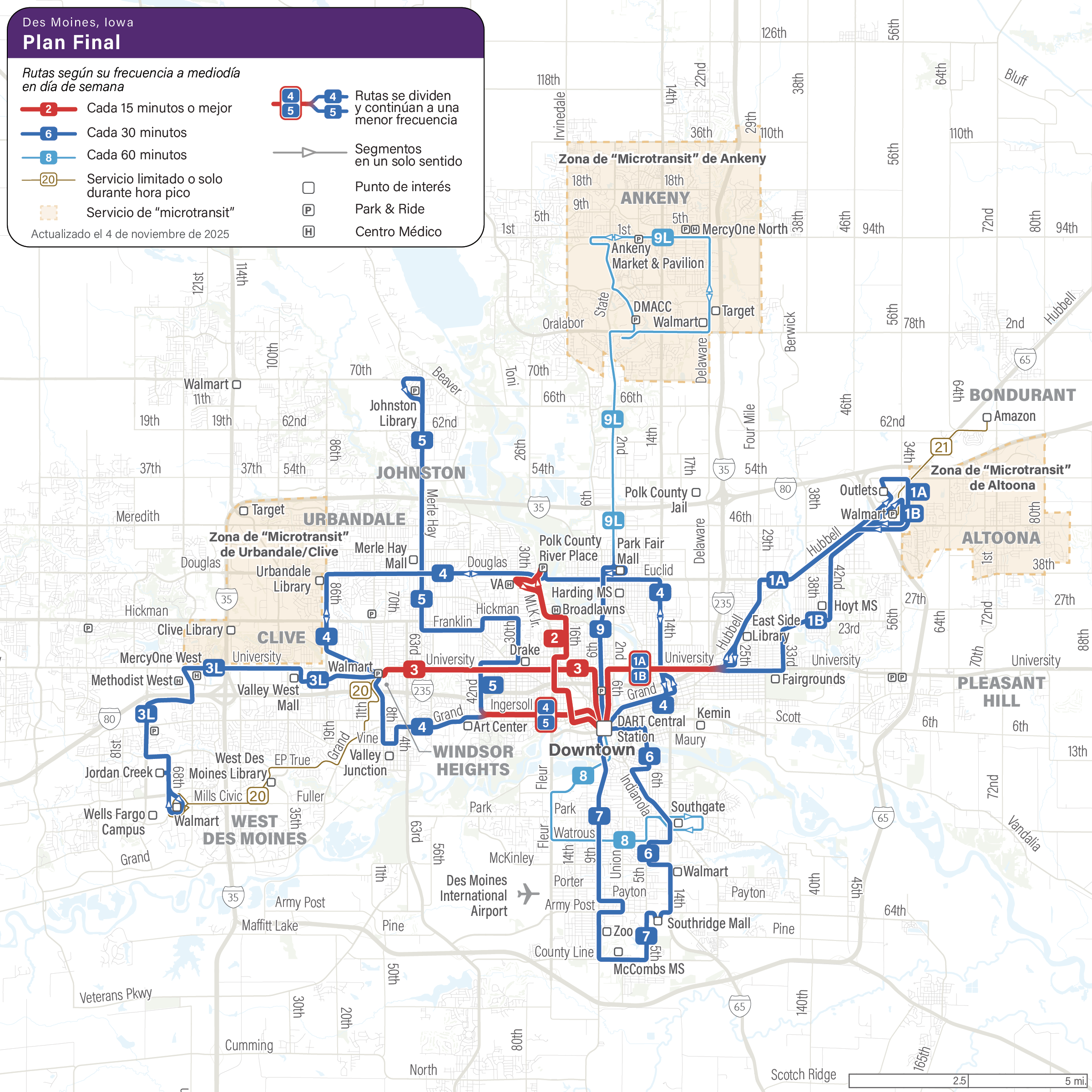 La Comisión de DART votará para adoptar el plan final en su reunión del 2 de diciembre. DART implementará las nuevas rutas de autobuses en junio de 2026 y el nuevo servicio de “microtransit” en otoño 2026.